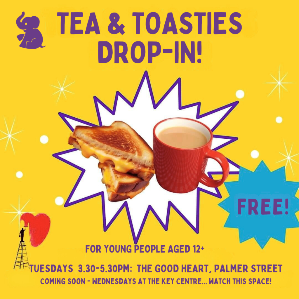 Free, informal, drop-in, session for aged 12 to 16. A welcoming, low-pressure space to relax and enjoy a bite to eat after school. Purple Elephant staff and volunteers are also there to meet young people, listen and share information about what support is available locally.
